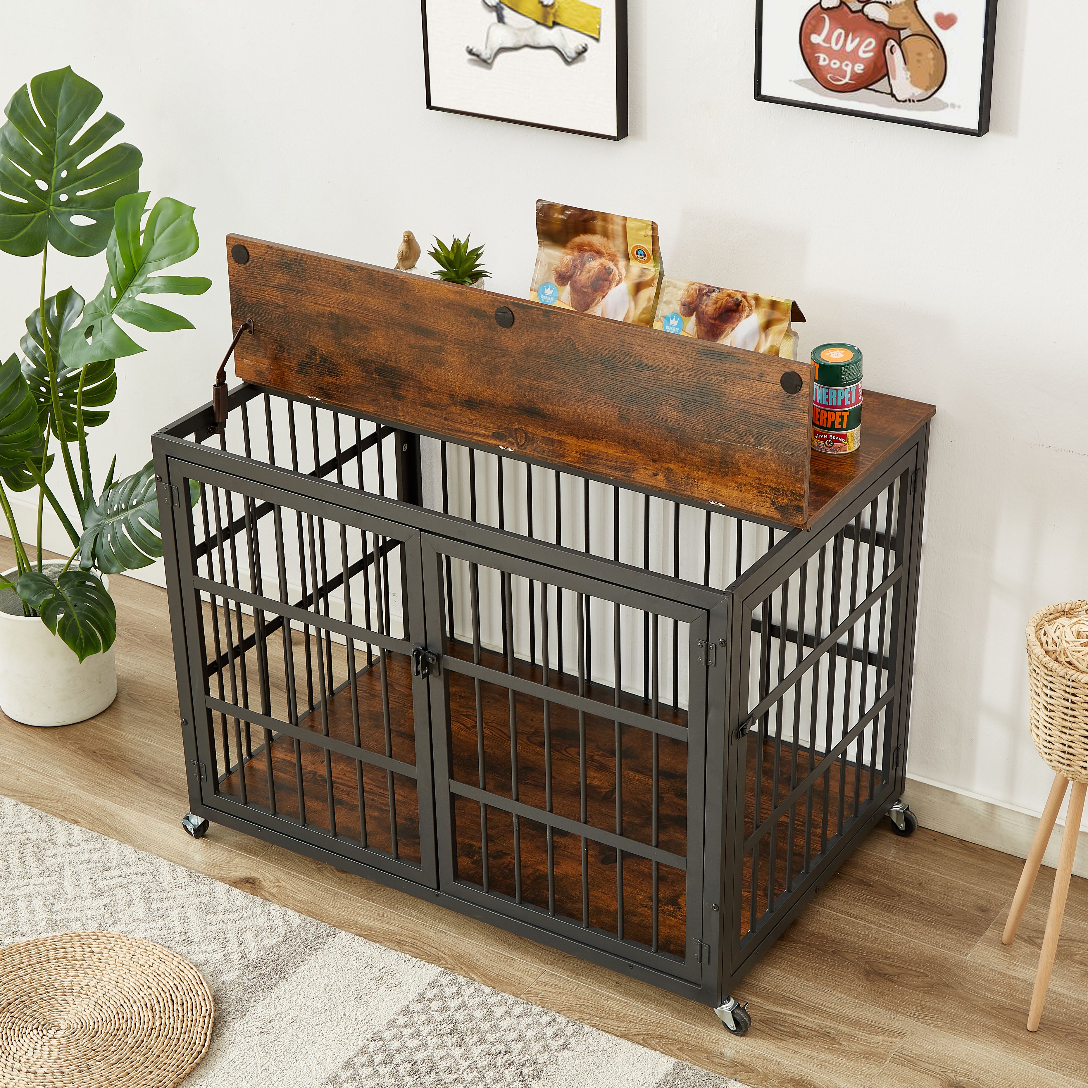 Home > Furniture Style Dog Crate Wrought Iron Frame Door With Side Openings, Grey, 43.3''W x 29.9''D x 33.5''H.