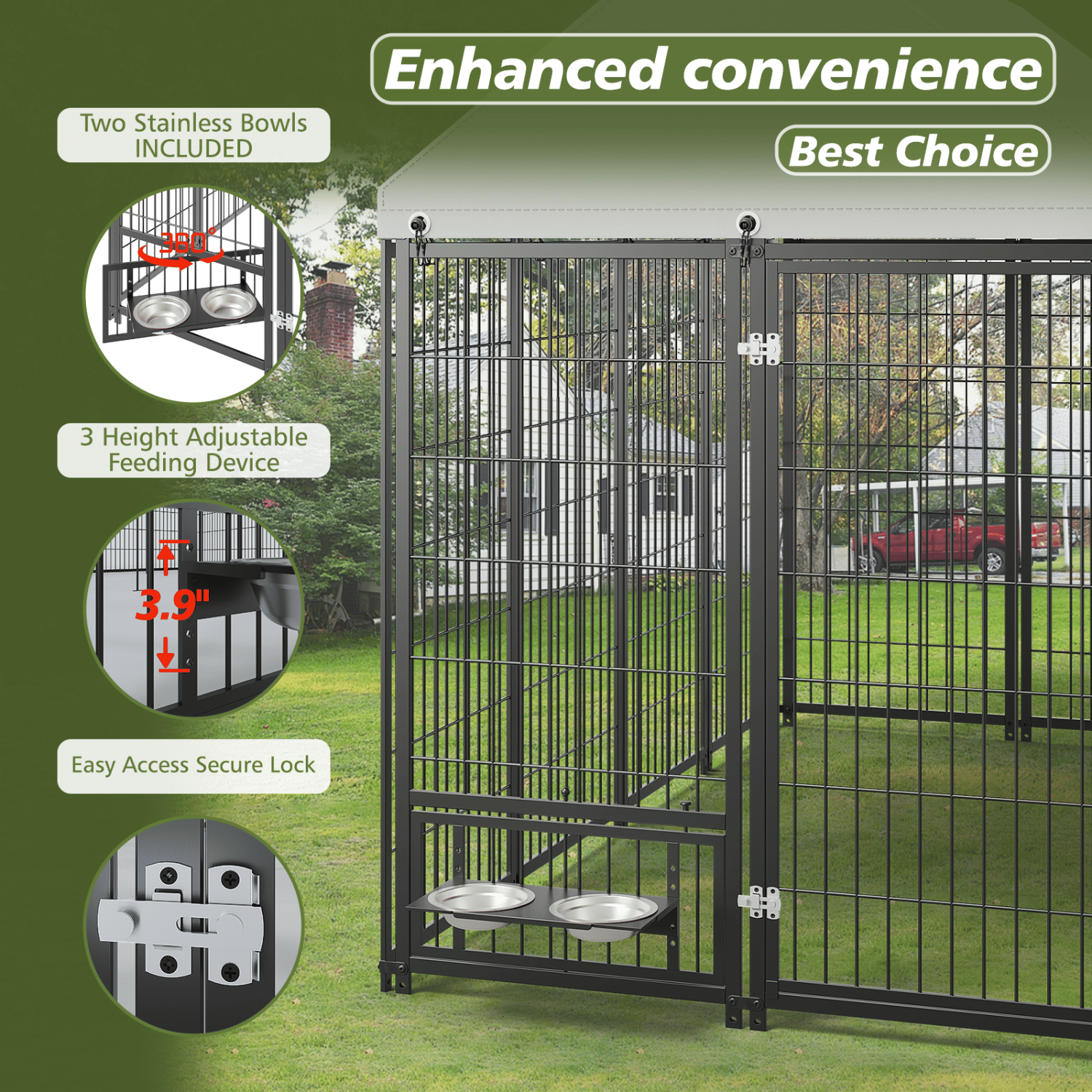 2. Reinforced structure: This outdoor dog cage is made of high-quality metal iron, with multiple load-bearing columns added for greater stability. The double door lock design prevents your pet from rushing out of the cage.