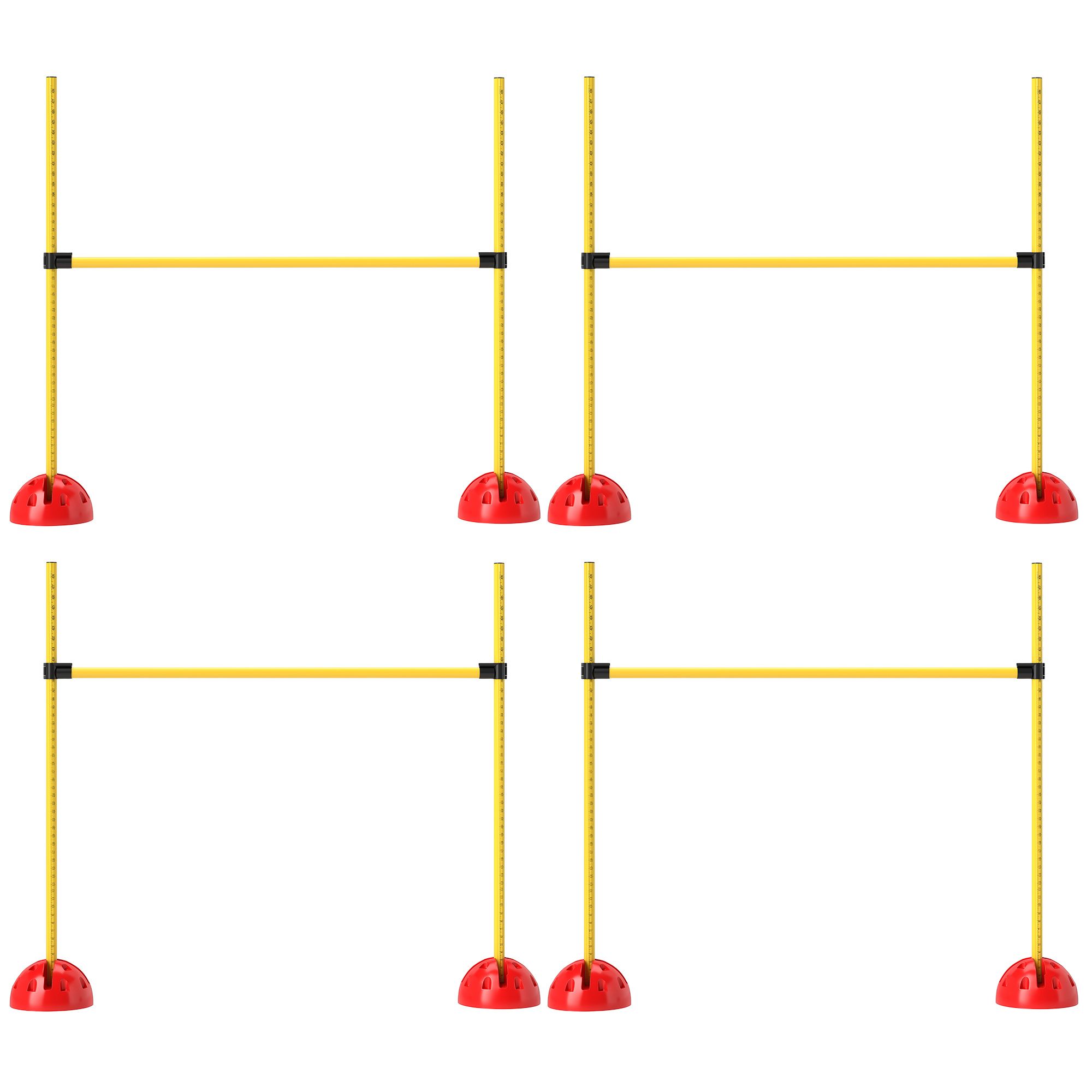 Unleash your pup's potential with the PawHut Dog Agility Equipment Set! This vibrant 4-piece dog training equipment, featuring four adjustable dog jumps and a handy carry bag is designed to enhance your dog's agility and obedience. The orange and yellow hues heighten visibility, aiding in faster learning, while the robust ABS construction ensures safe, enduring fun for all dog training and exercise needs.