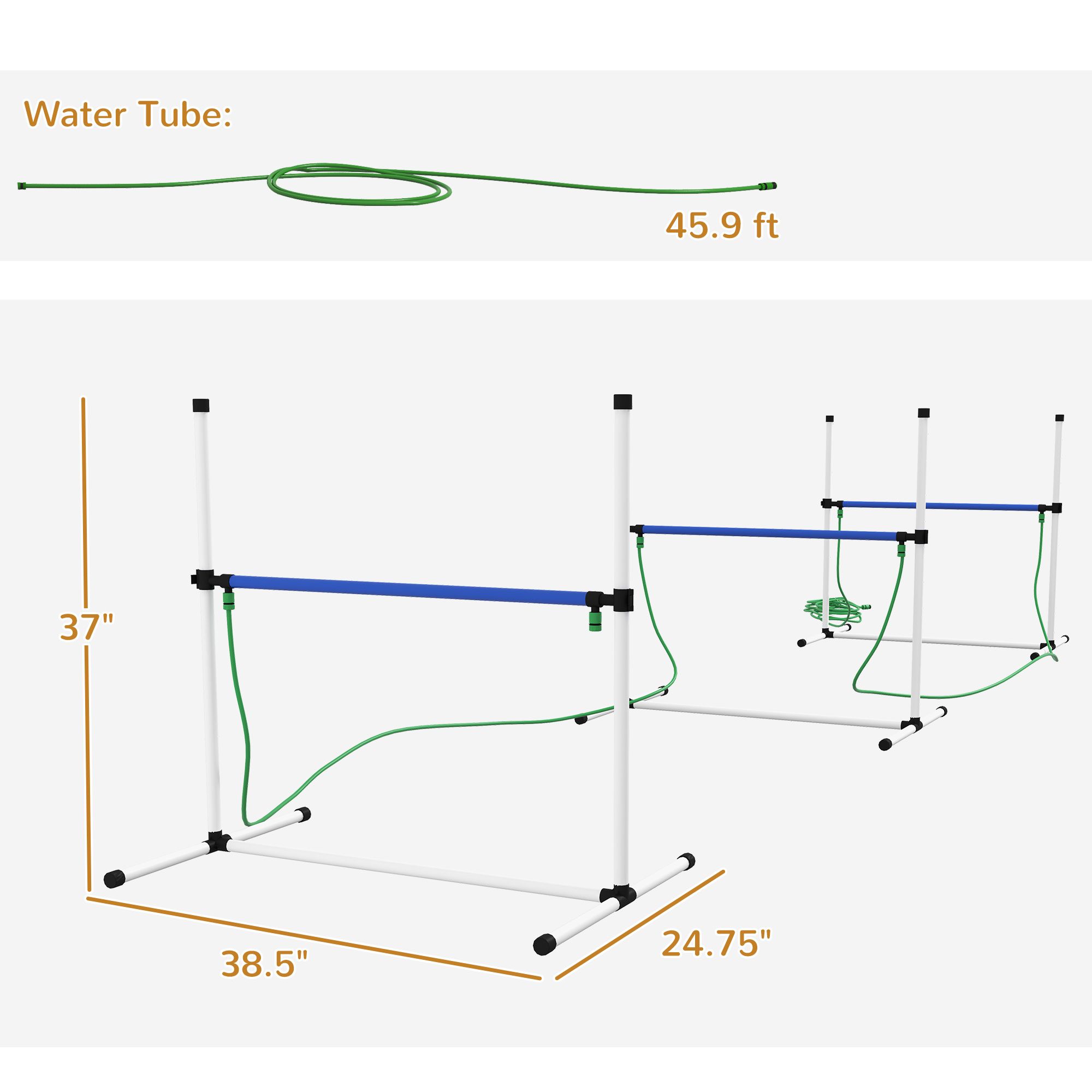 Bring your dog the fun and excitement of agility training with the PawHut pet agility set. This four-piece set, featuring three adjustable hurdles, a whistle, and a 600D carry bag, is your dog's ticket to versatile agility exercises. With a water spray function for cooling fun on hot days and multiple training configurations, this dog agility set creates an outdoor adventure for you and your furry friend.
