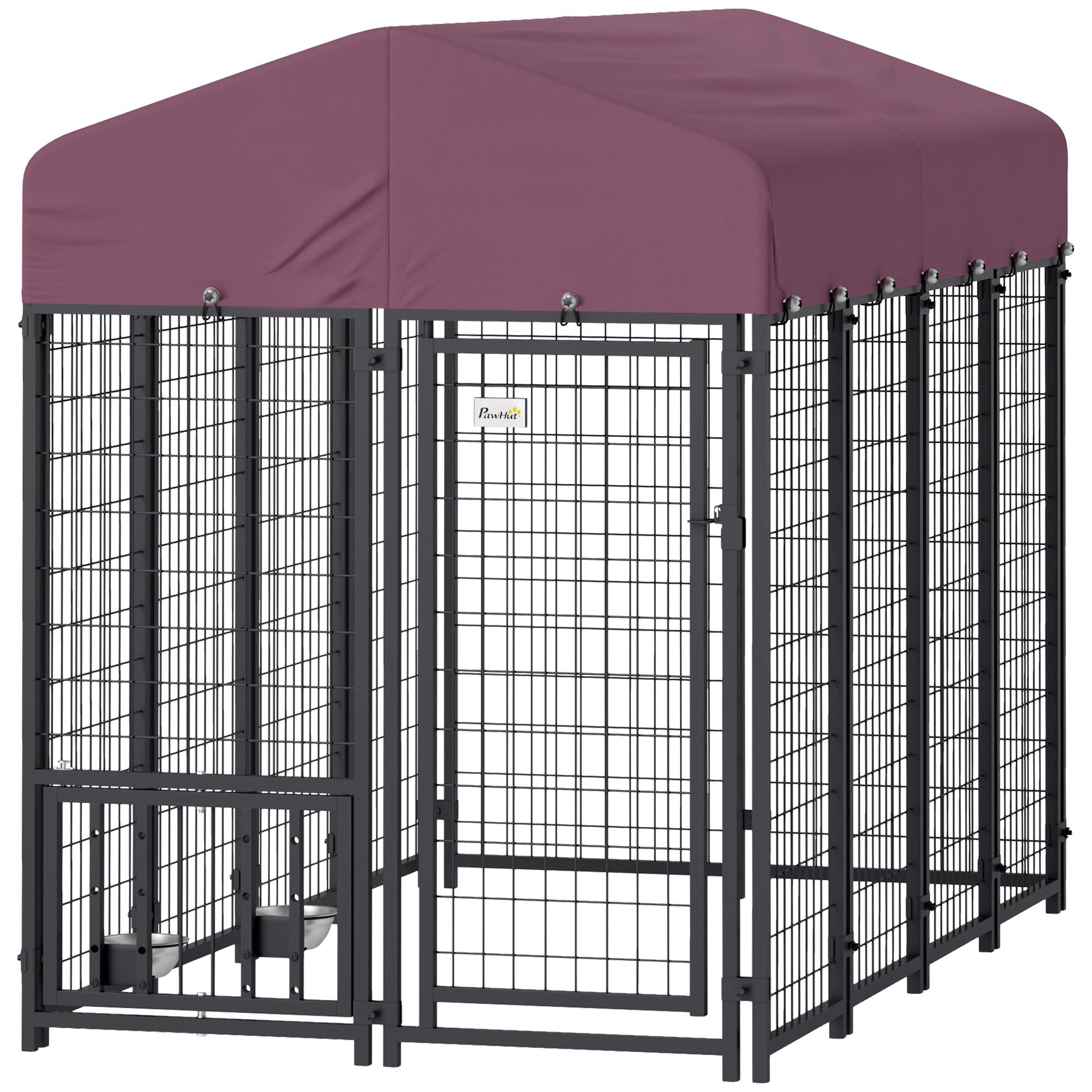 Get a spacious home for your furry friend with a PawHut large outdoor dog kennel. It has water-safe wire, a top cover with a solid metal roof frame, a lockable gate, and ample room for your dog. It's a practical kennel for your dog. This solid outdoor dog run can be used outside or inside; it's easy to assemble or disassemble and requires almost zero maintenance.