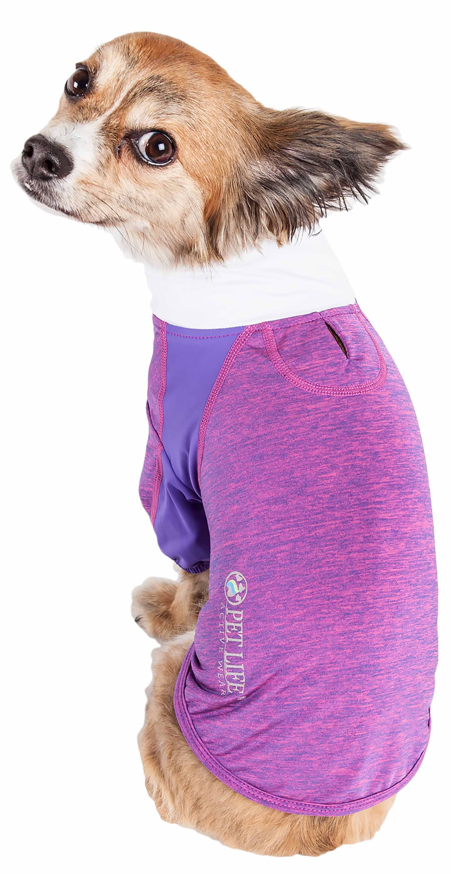 The Pet Life ACTIVE 'Chewitt Wagassy' Heathered Triple-Toned Long Sleeve Performance T-shirt features specially engineered Stretchy fabric that are Lightweight and Permeable resulting in a well Ventilated system that is specially developed to maximize Mobility and Breathability. Features 4-Way Stretch Technology that moves better in every direction with a customized relaxed fit without the squeeze and won't bunch up. The side of the body and arms feature a lighter blend of fabric for strategic ventilation. Features Quick-Drying properties that dries extremely fast while offering Anti-Odor technology that prevents odor causing microbes. The Chewitt-Wagassy Long Sleeve T-shirt is also UV Protectant against the suns harmful rays and fitted perfectly to help assist in containment or collection of shedded hairs. Design features Dual Reinforced stitching at every seam for durability with a convenient zippered design with protective zipper flaps preventing the pet's hairs from getting caught within the zipper tracks. Additionally this T features Reflective Taping for added night visibility and a Leash Slit along the back. Machine Washable. This style is part of our Pet Life Activewear Collection. Available in Multiple Sizes and Colors.