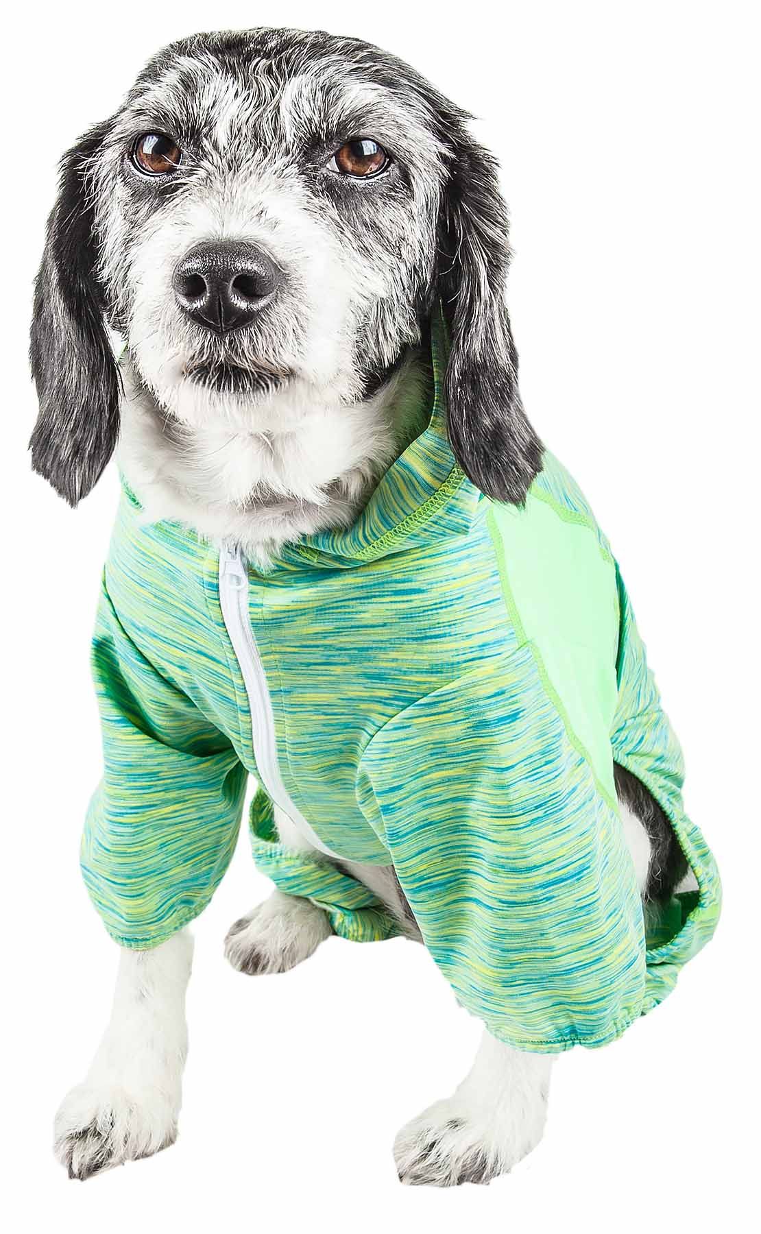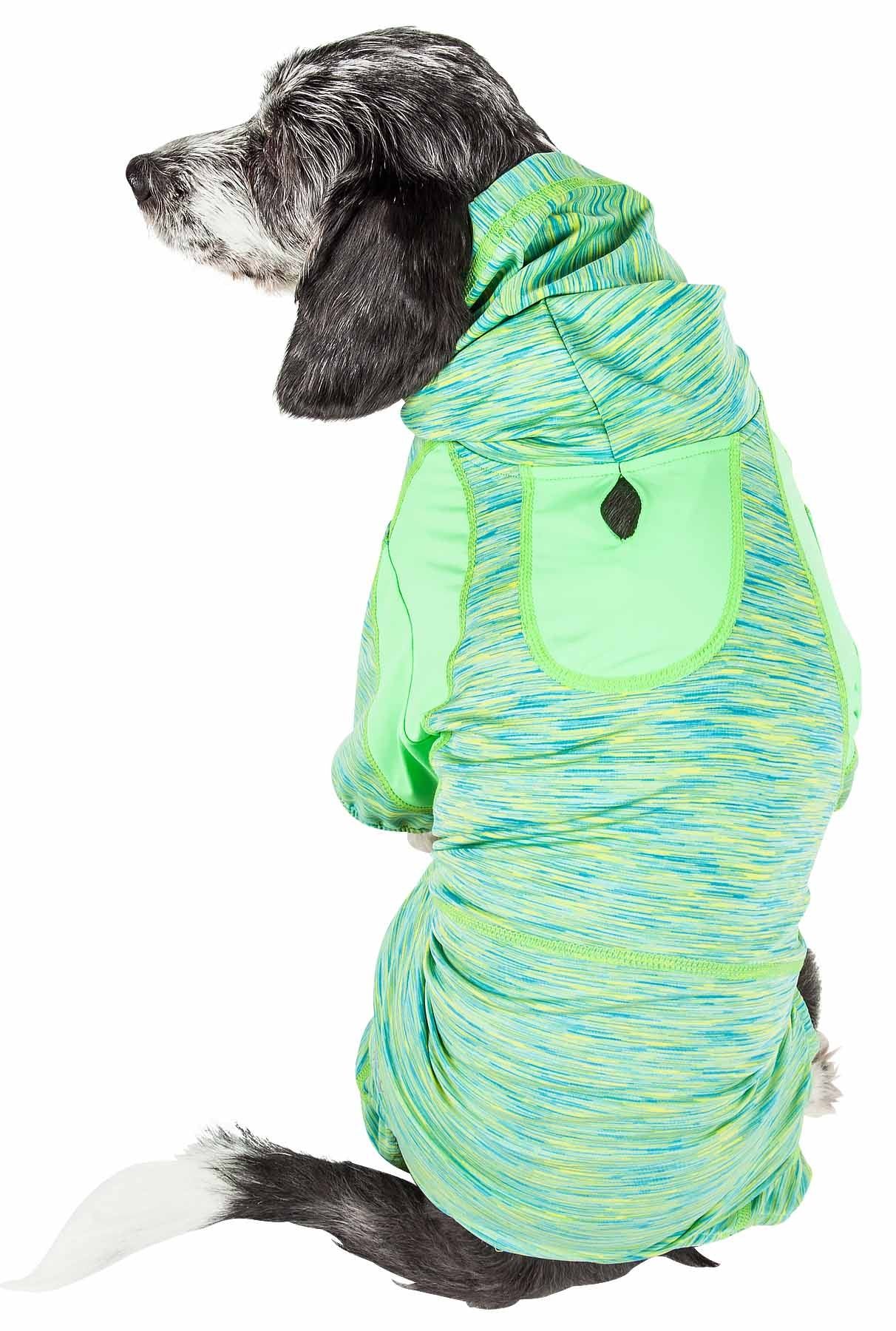 Home > Pet Life Active 'Downward Dog' Heathered Performance 4-Way Stretch Two-Toned Full Body Warm Up Hoodie