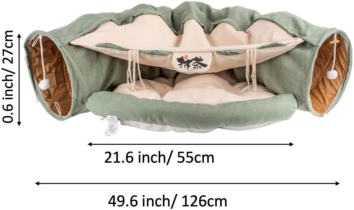 2.ATTRACTIVE TWO IN ONE DESIGN - Combines Cat Tunnel with Cat Bet, beautiful and practical cat tunnel nest, the perfect combination of toy tunnel and cat bed, the tunnel also built-in sound paper and toy balls, Add more fun for your cats.